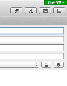 Hat man seine Schlüssel erfolgreich importiert oder erstellt und evtl sogar jemanden, dem man eine Mail senden kann, so erscheinen in Mail beim Schreiben von Nachrichten ein paar neue Icons: