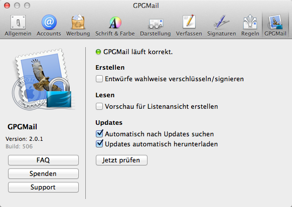 Die Einstellungen von GPGMail sind recht übersichtlich ausgefallen: