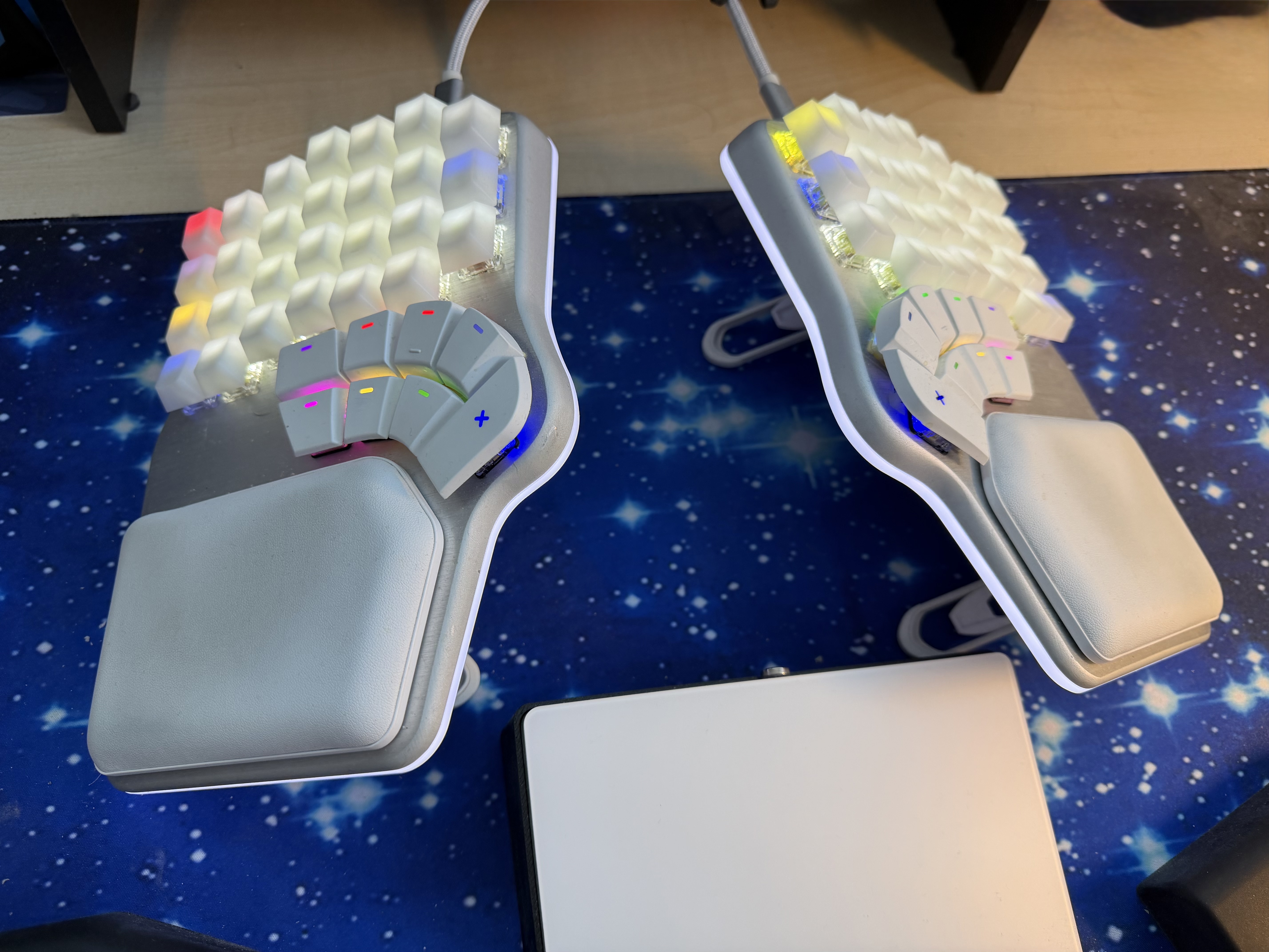 Would I buy the Dygma Defy again? Yes. It's not perfect β€” the tenting could be more stable at steeper angles, the keycap situation for the thumb cluster is annoying, and the firmware customization isn't as open as on the Keyboardio. But overall, it's the best split keyboard I've had so far. The thumb cluster is excellent, hot-swap switches are a great feature, wireless works reliably, and the tenting works well in the range up to 25 degrees. Who is it right for? Anyone who already knows they want a split keyboard and cares about tenting and a large thumb cluster. If you're coming from a regular keyboard, expect the transition to take a few weeks β€” but it's worth it. And if, like me, you need an ergonomic solution after an accident or with RSI issues: the Defy is currently my recommendation. And if anyone from Dygma is reading this: Linear-A keycaps for the Defy. Please.